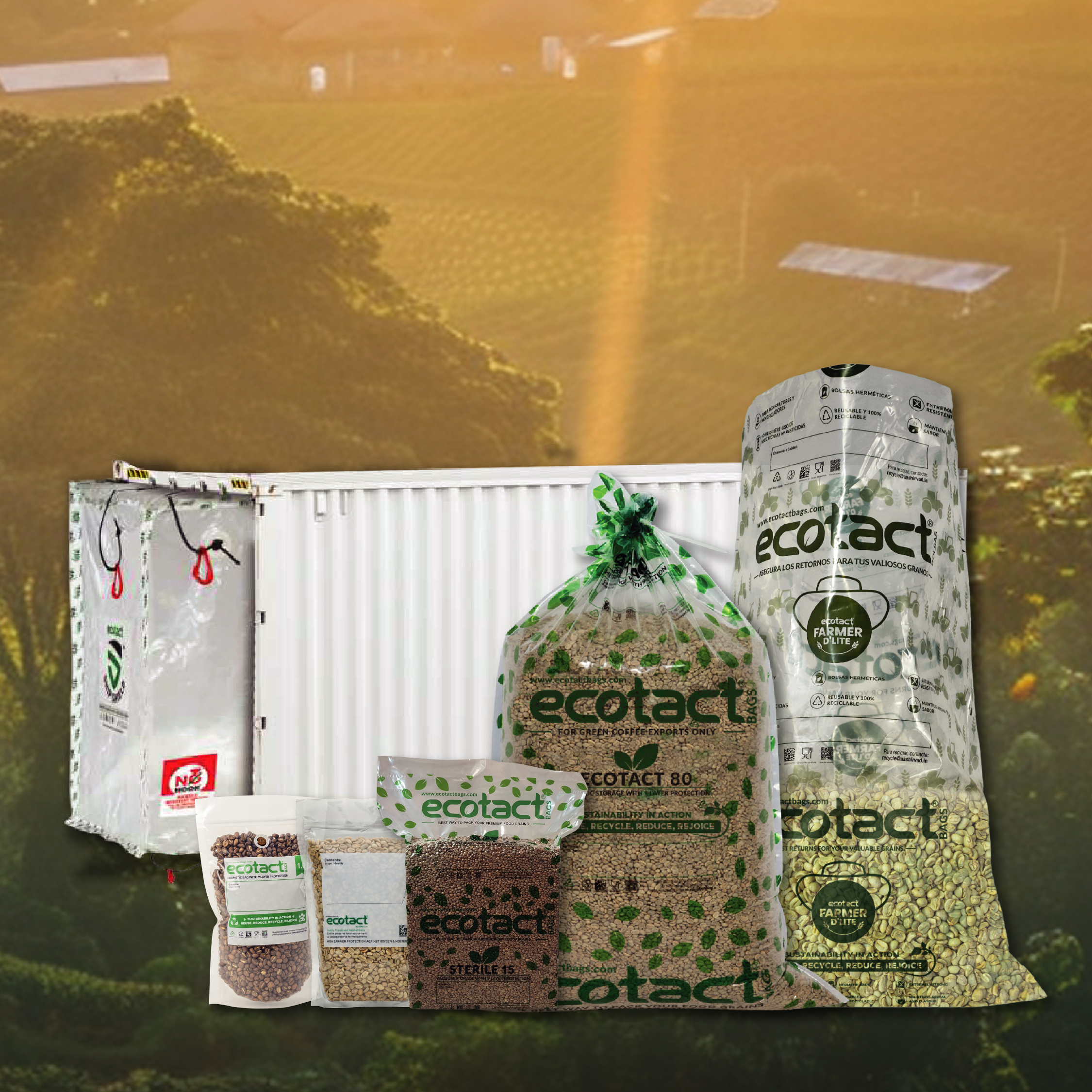 Implementamos tecnología y procesos ecológicos. Nuestras bolsas para exportar café Ecotact son reutilizables y 100% reciclables, contribuyendo a una gestión de residuos eficiente.
