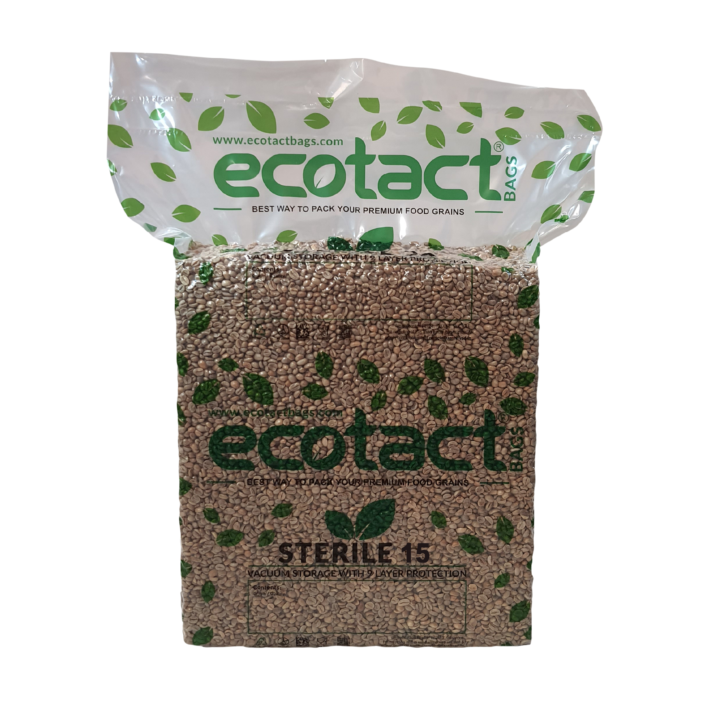 - Versatilidad de Uso: Aunque son perfectas para la industria del café, las bolsas Ecotact Sterile 15 son también ideales para otros productos agrícolas que requieren protección contra el deterioro durante el almacenamiento y transporte.